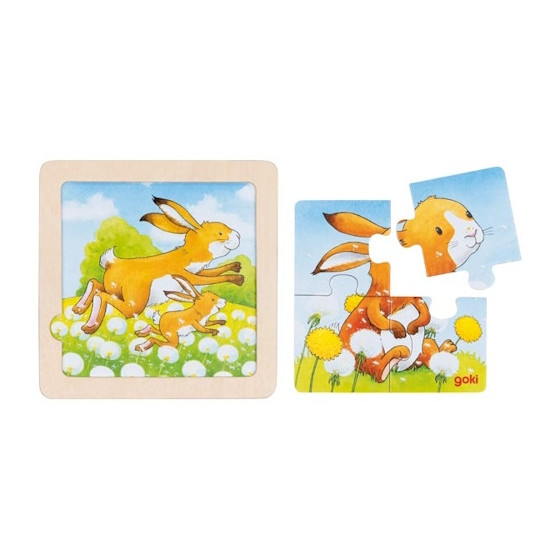 Puzzle bébé Lapin Puzzle en bois Dim. du puzzle : 14 x 14 cm Dim. des pièces : environ 5,5 cm Age : à partir de 1 an et +