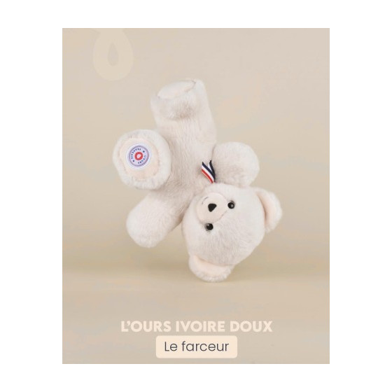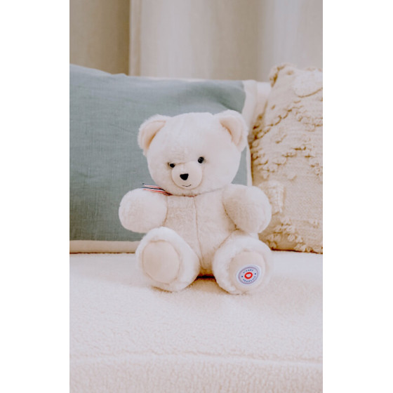 L'Ours Français Le farceur Couleur : ivoire doux Technologie innovante Fleximoov Dim. : 25 cm environ (existe en 35 cm)...