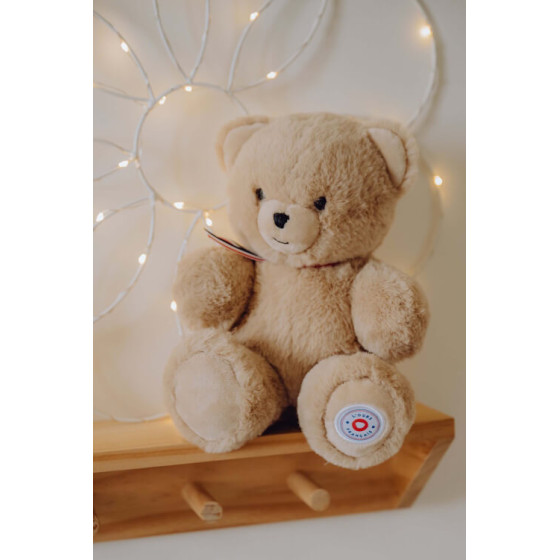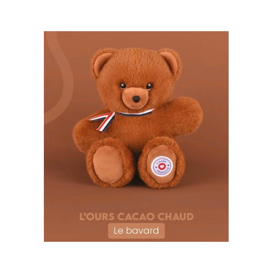 L'Ours Français Le bavard Couleur : cacao chaud Technologie innovante Fleximoov Dim. : 25 cm environ (existe en 35 cm)...